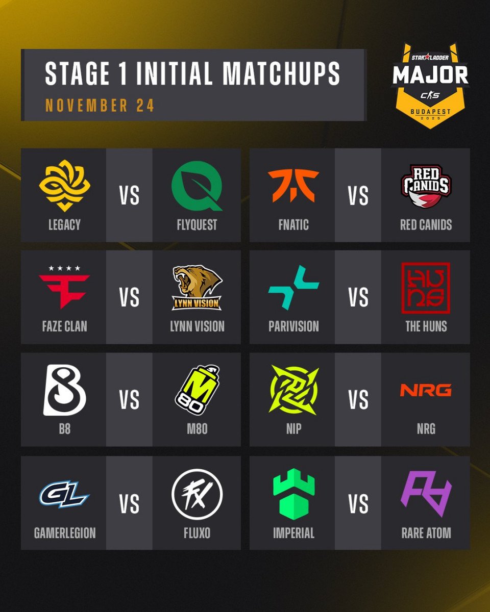 Организаторы грядущего мейджора StarLadder Budapest Major 2025 по Counter-Strike 2 опубликовали посев команд в первой стадии ивента.