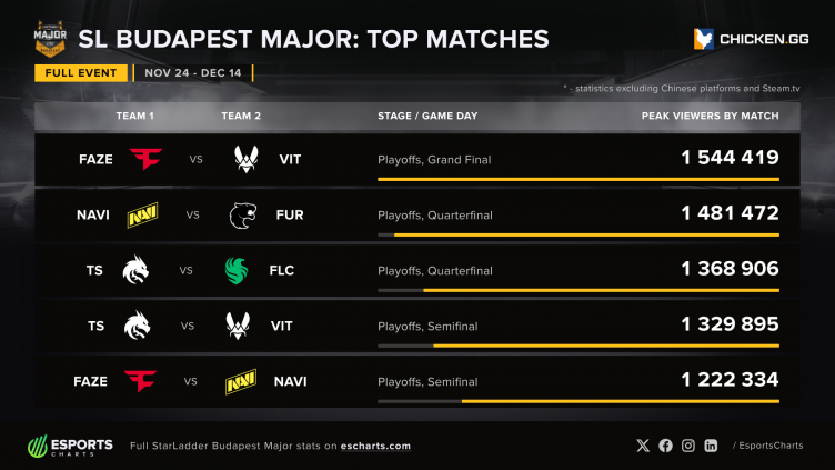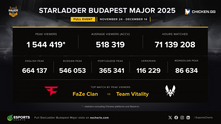 Финал StarLadder Budapest Major 2025 собрал больше 1.5 млн зрителей в пике