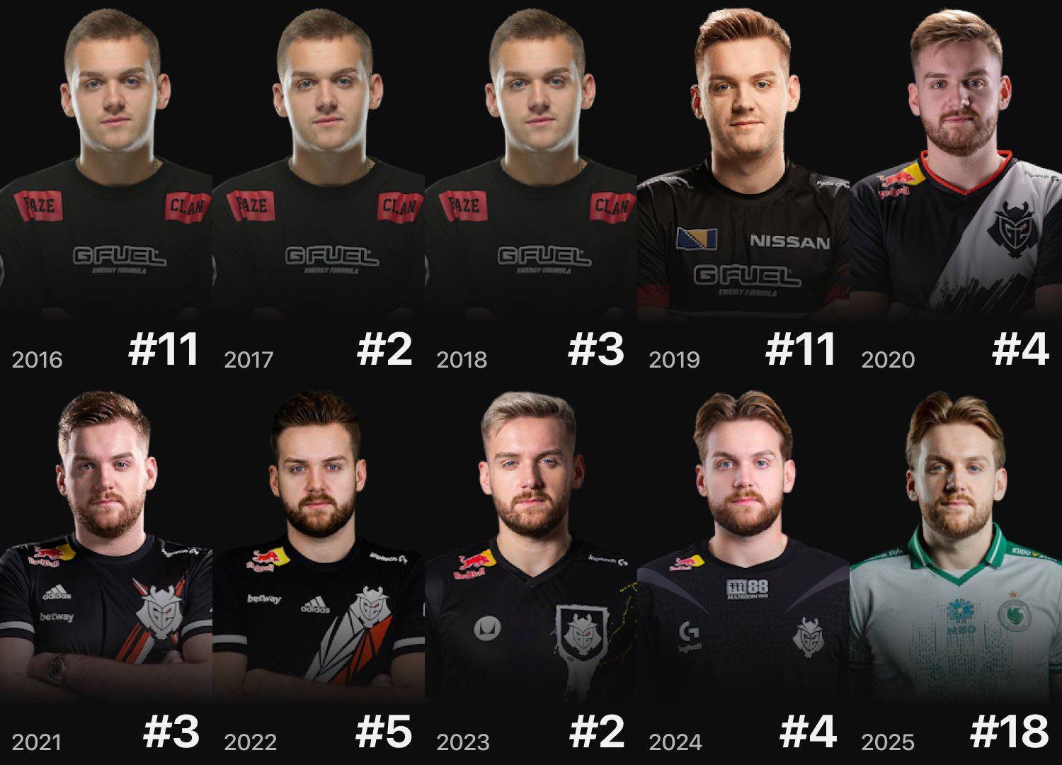 Участник состава Falcons по Counter-Strike 2 Никола "NiKo" Ковач поставил мировой рекорд по количеству попаданий в двадцатку сильнейших игроков на профессиональной сцене CS по итогам года.