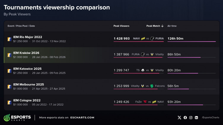 IEM Kraków 2026 стал самым популярным турниром по CS вне мейджоров