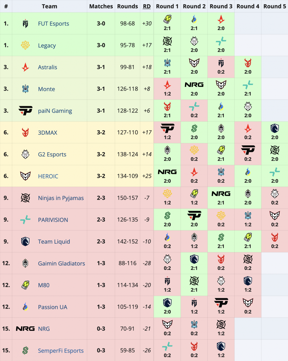 В матчах за выход в следующий этап ивента HEROIC одержала победу над PARIVISION, G2 взяла верх над NIP, а 3DMAX оказалась сильнее Liquid. Проигравшие коллективы завершили выступление на турнире.