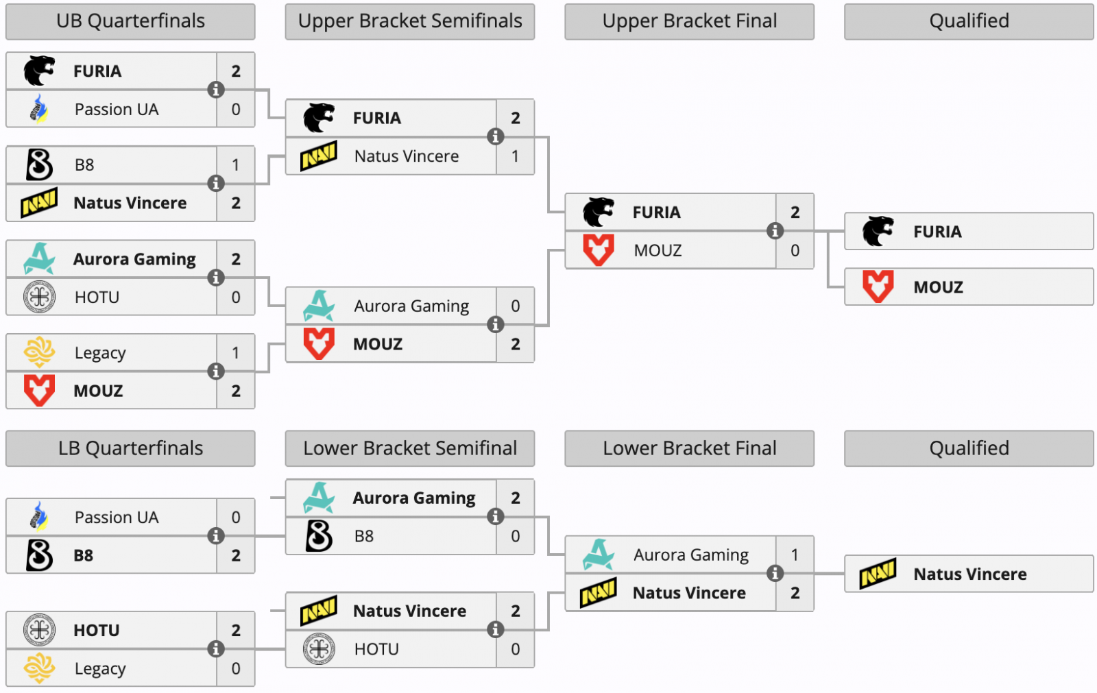 В финале верхней сетки FURIA со счетом 2:0 обыграла состав MOUZ и тем самым гарантировала себе путевку в топ-4 ивента. MOUZ, в свою очередь, начнет свое выступление в плей-офф с четвертьфинала.